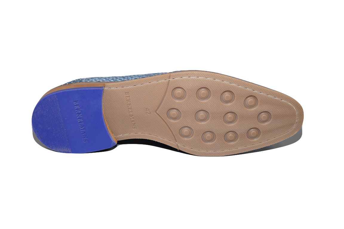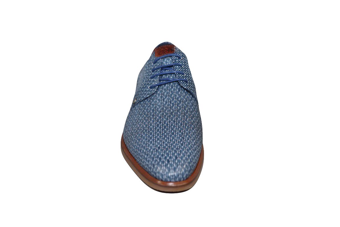 Mooie geklede veterschoen van Berkelmans in blauw leer met fijne print.