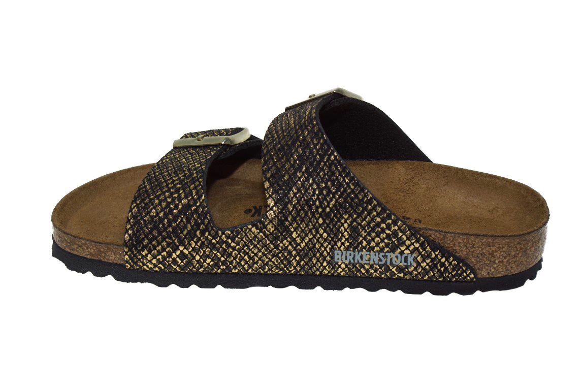 Heerlijke 2 band slipper van Birkenstock in nieuwe goud zwart snake print.