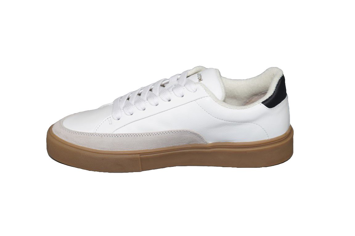 Sportieve sneaker van Blackstone in wit leer met suede rand.
