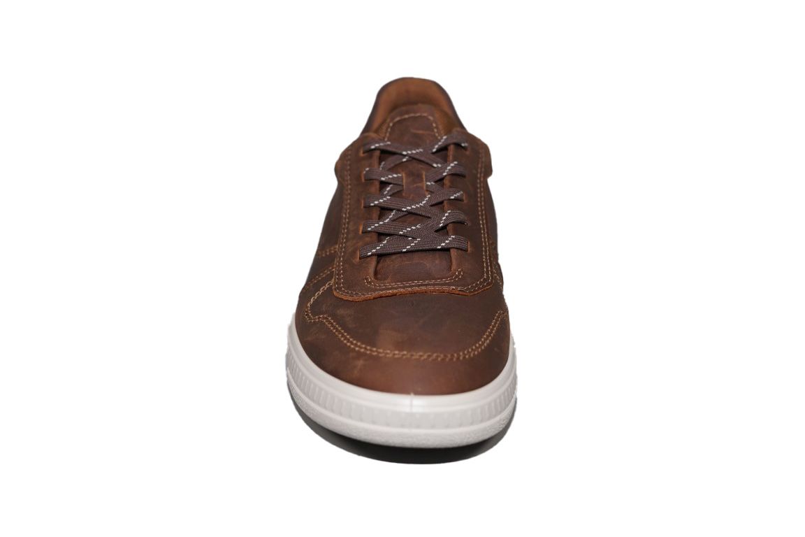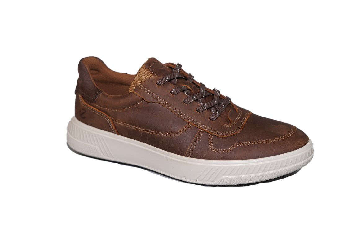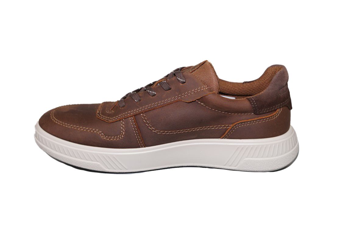 Soepele veterschoen van Ecco in bruin gevet leer met lichte zool.