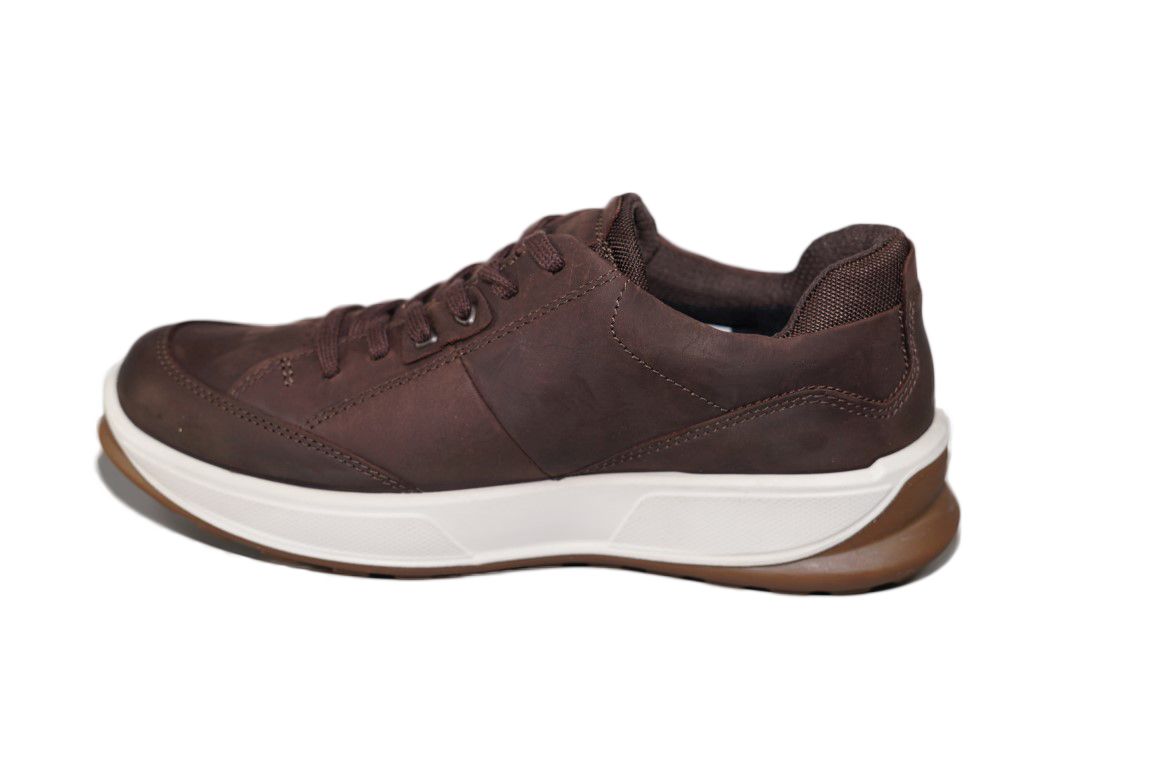 Sportieve veterschoen van Ecco in bruin gevet leer met stevige lichte zool.