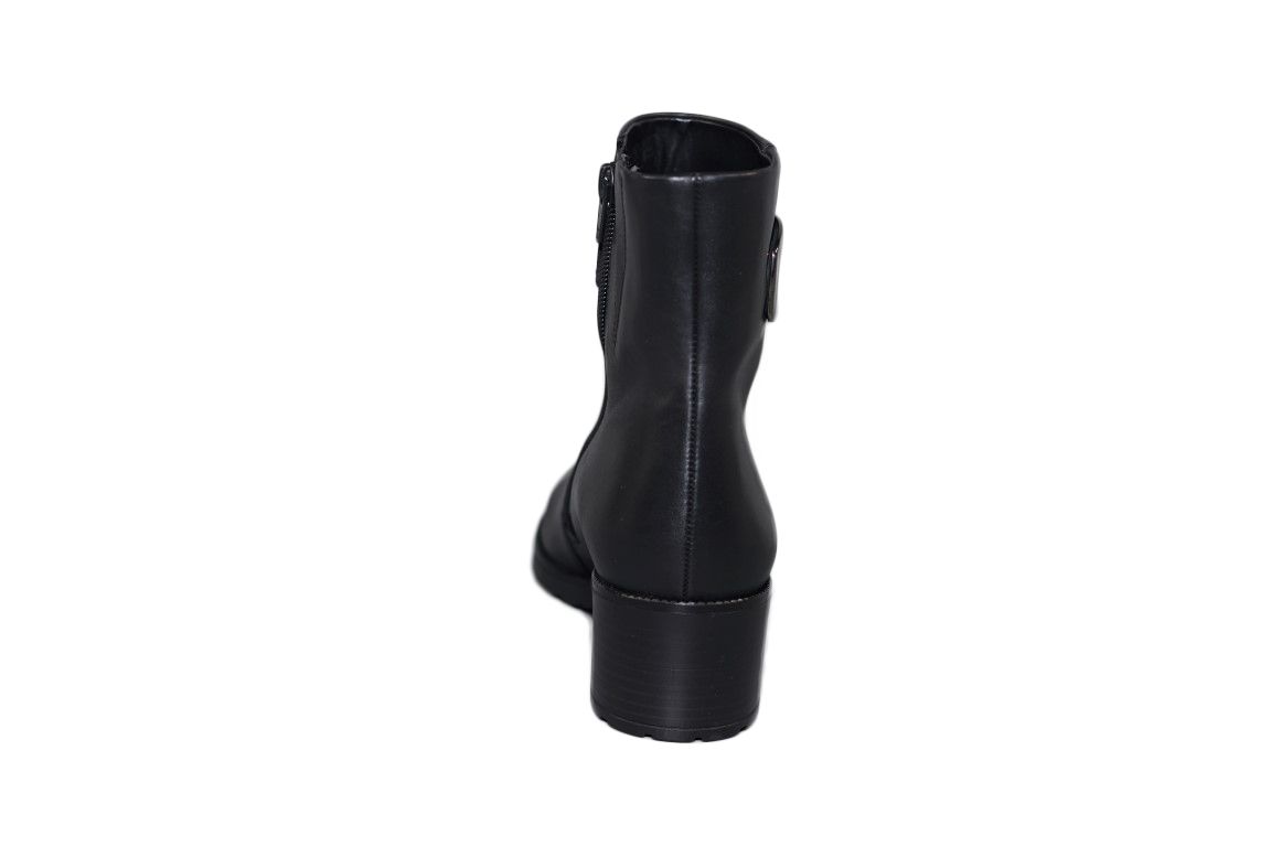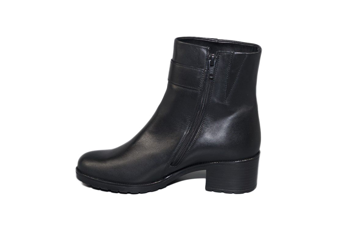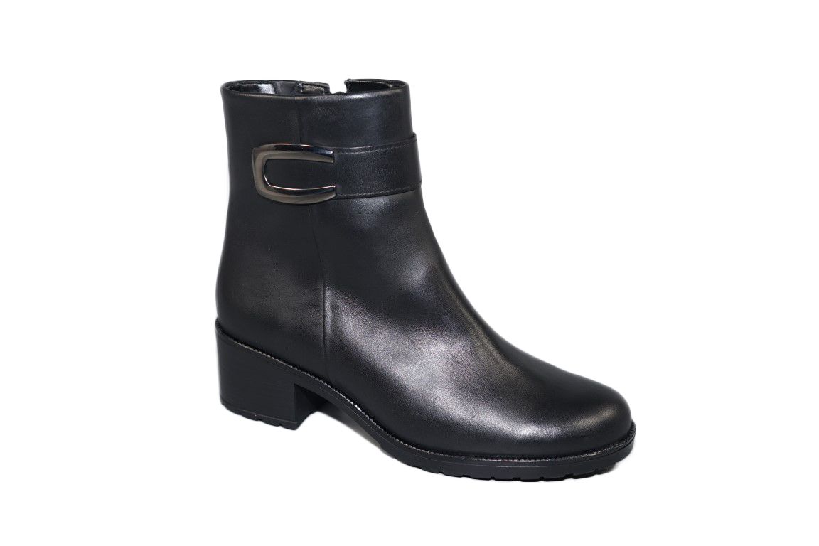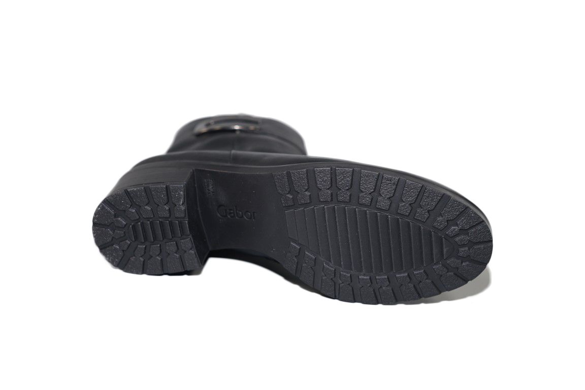 Mooie luxe enkellaars van Gabor in zwart leer met grote gesp op de enkel op een mid hoge hak.