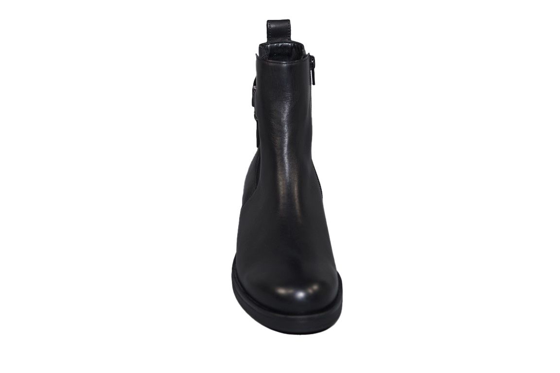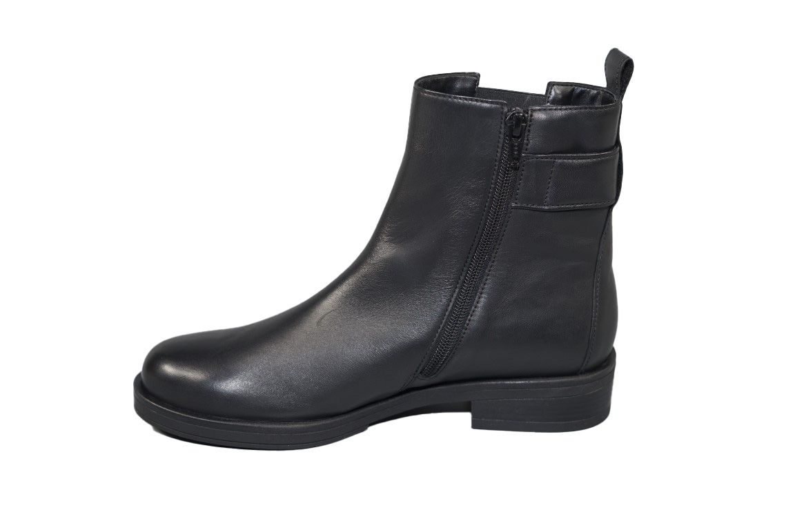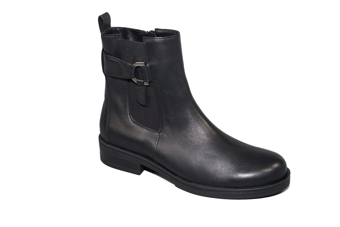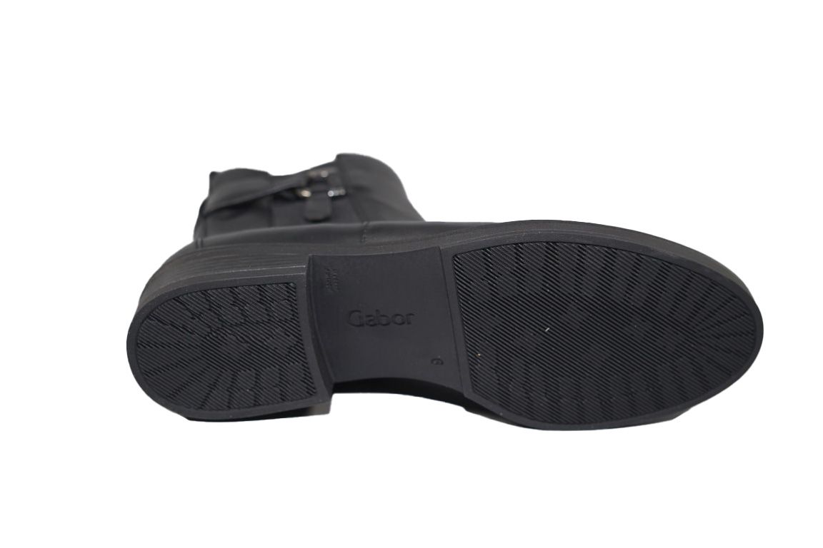 Mooie enkellaars van Gabor in zwart leer met elastiek en gespje op de schacht. Platte zool