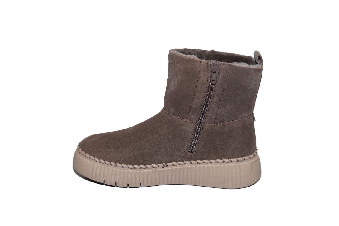 Lekker warme enkellaars van Gabor in taupe suede.