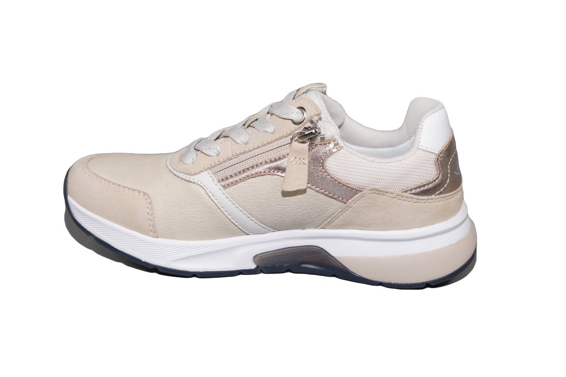 Sportieve veterschoen van Gabor in beige combinatie met dubbele rits en extra brede leest.
