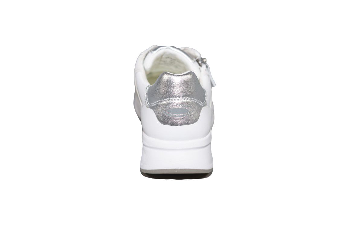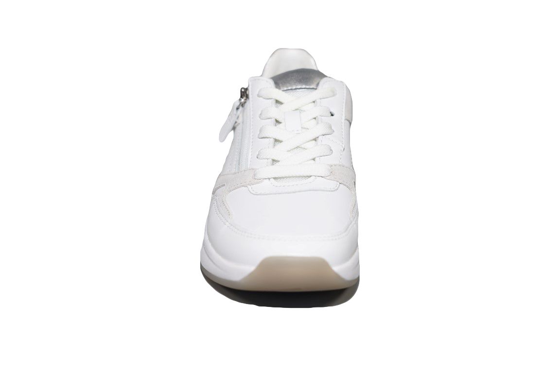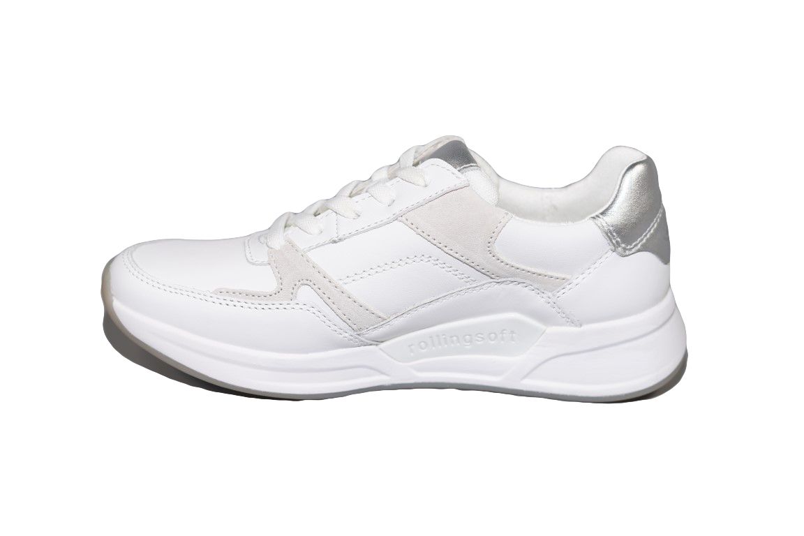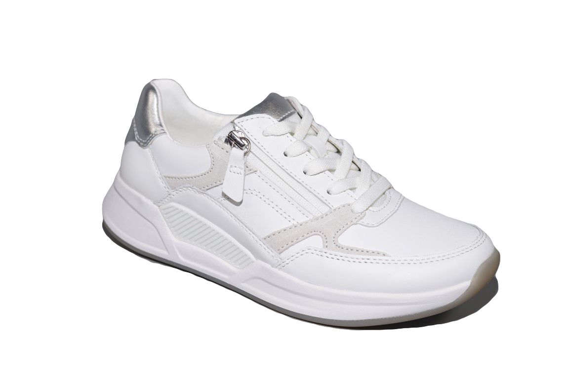 Sportieve veterschoen van Gabor in wit leer op rollingsoft zool.