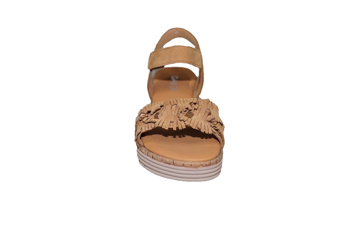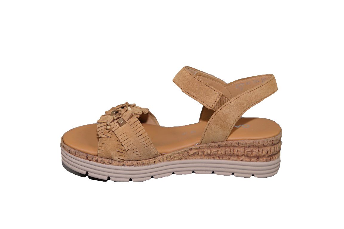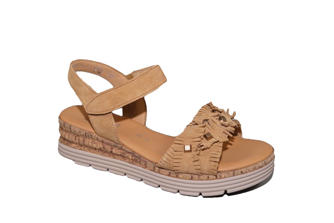 Mooie stoere sandaal van Gabor in Sattel Suede met franjes over de wreef en plateau zool
