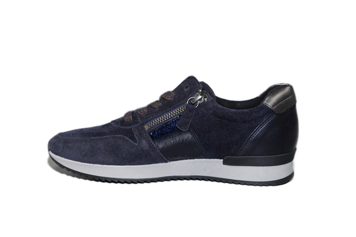 Fijne vetertschoen van Gabor in Blauw suede met lak combinatie.
