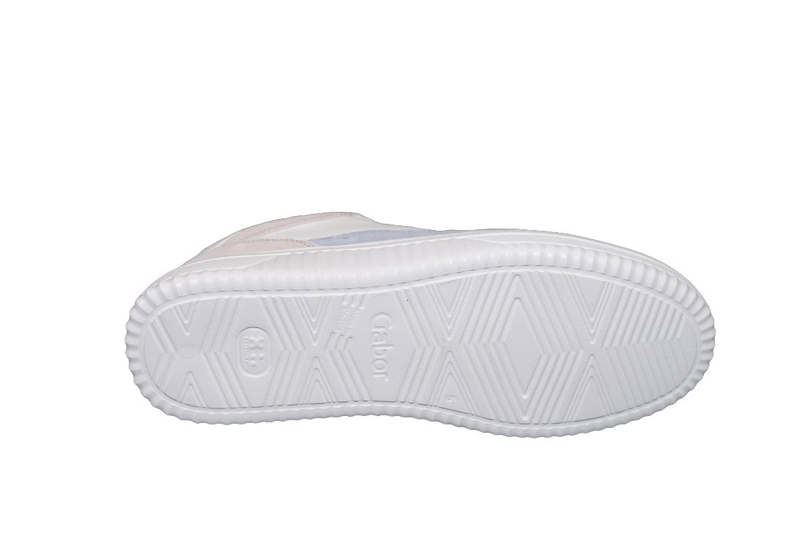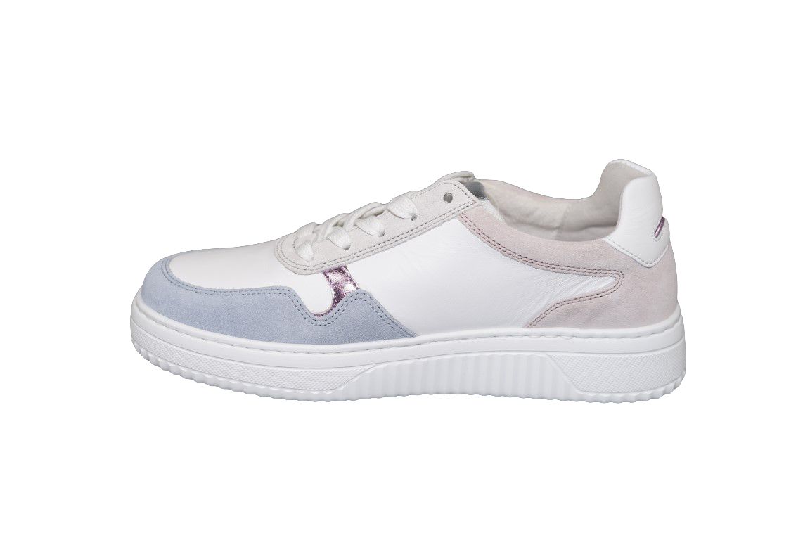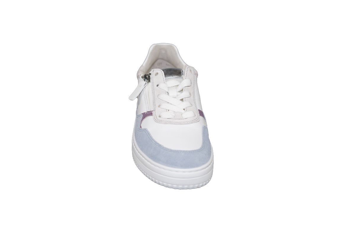 Sportieve veterschoen van Gabor in wit met blauw combinatie op extra brede K leest.