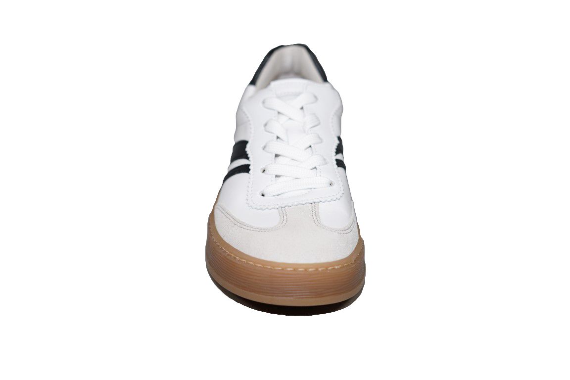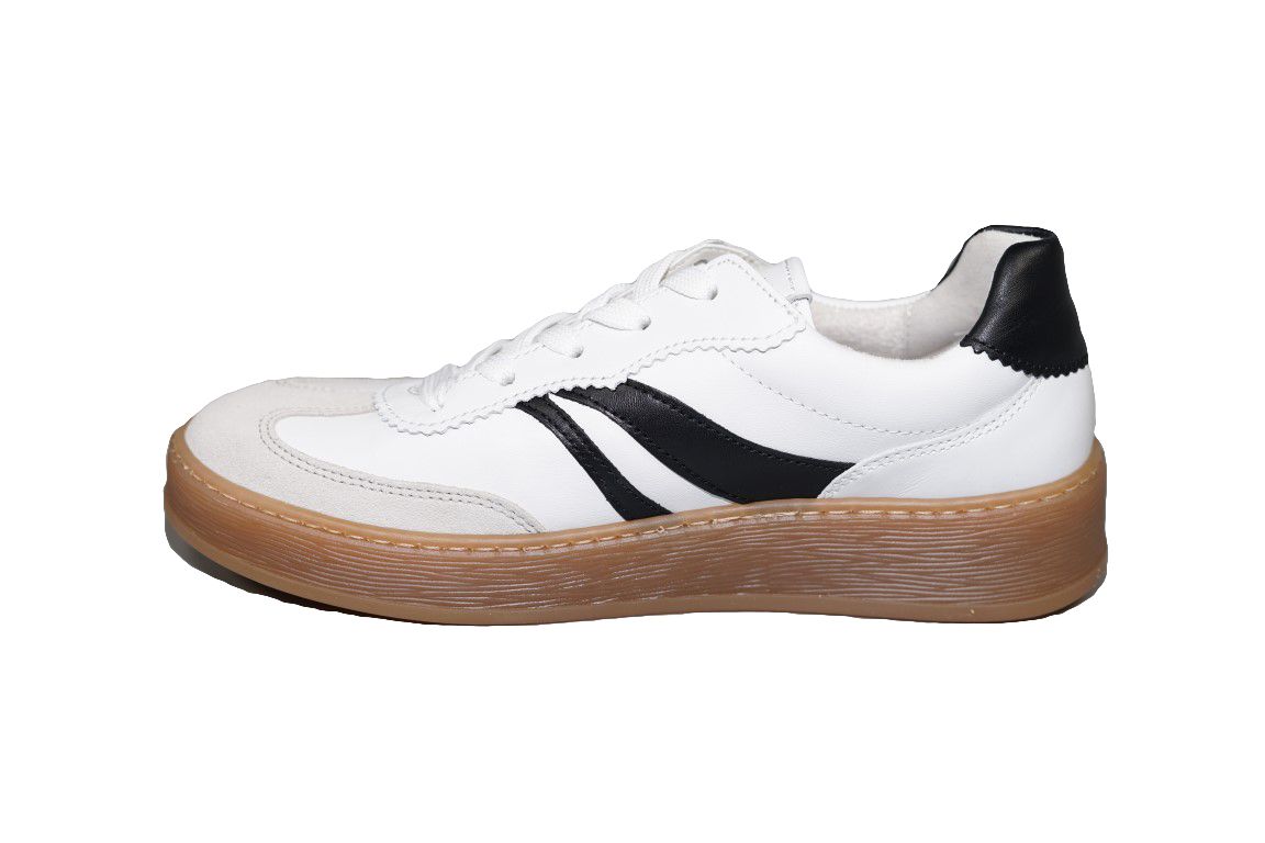 Sportieve Sneaker van Gabor in wit leer met zwarte strepen.