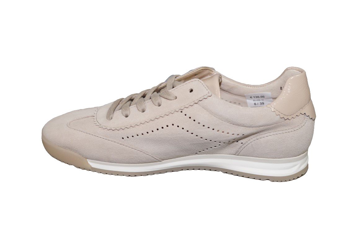 Fijne veterschoen van Gabor in beige suede op fijne sportieve zool.