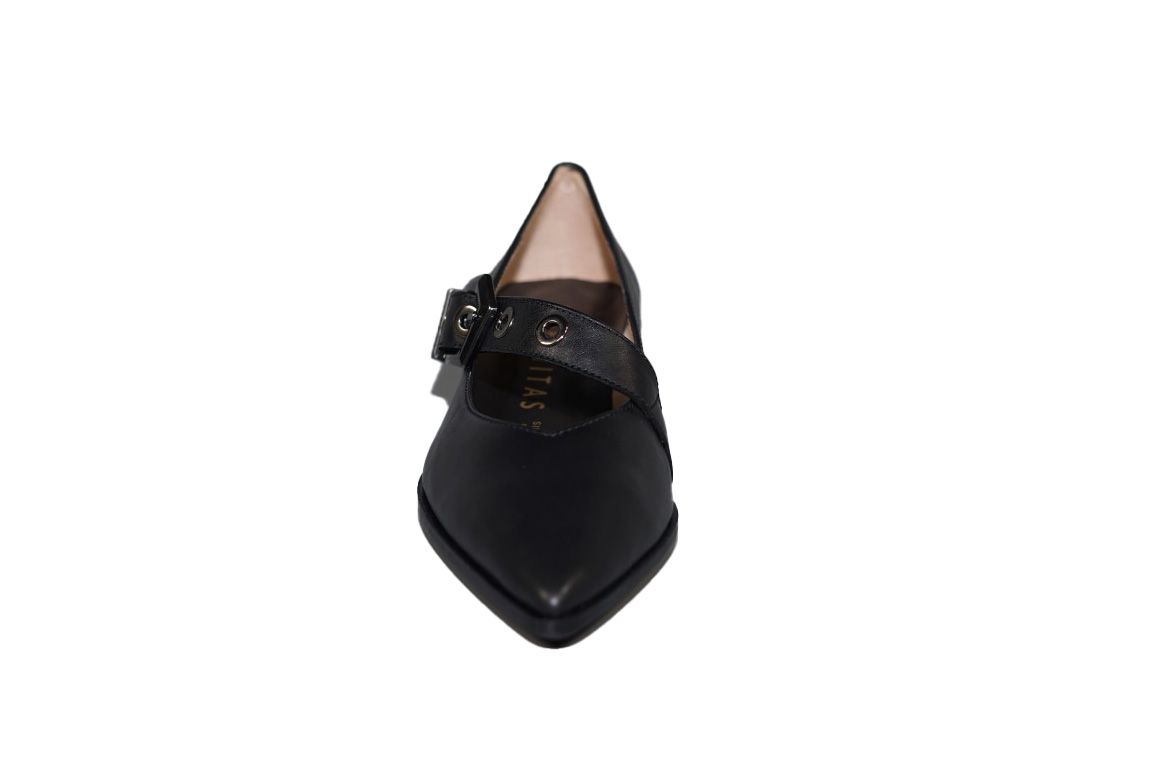Mooie luxe pump loafer van Hispanitas in zwart leer met geps over de wreef.
