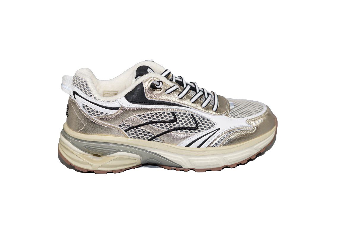 Sportieve sneaker van Maruti in goud mesh combinatie.