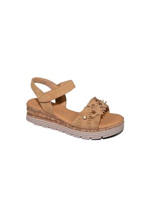 sandaal in sand met klitteband plat kurk