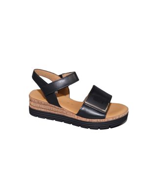 sandaal in zwart met klitteband plat kurk