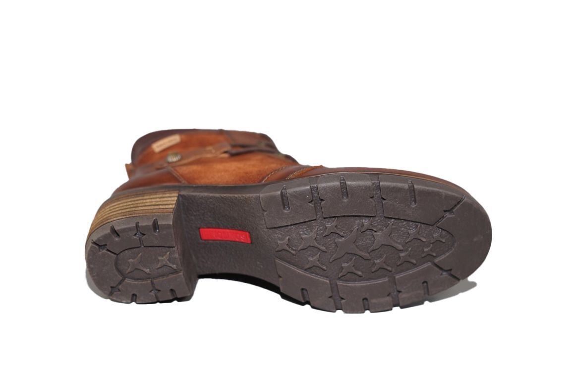 Stoere veterboot van Pikolinos in cognac glad leer met suede combi op een mid hoge hak.