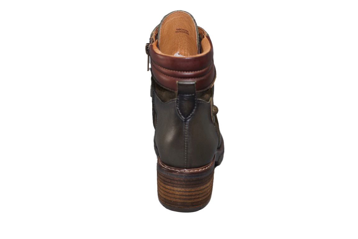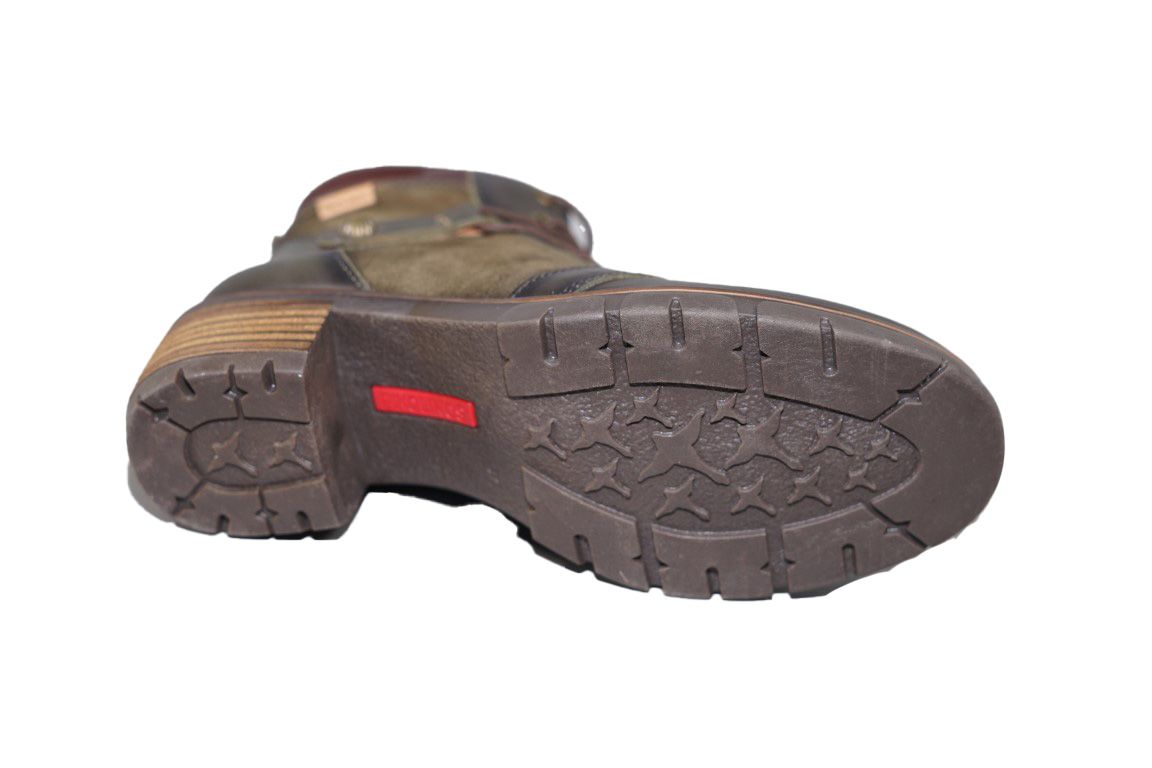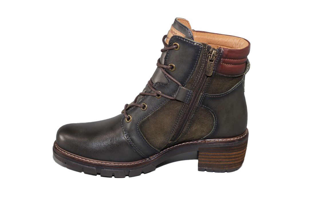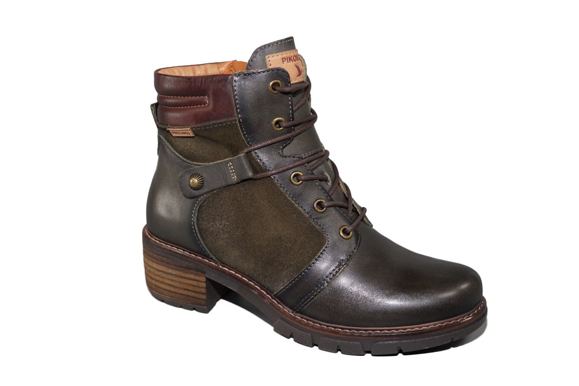 Stoere veterboot van Pikolinos in groen glad leer met suede combi op een mid hoge hak.