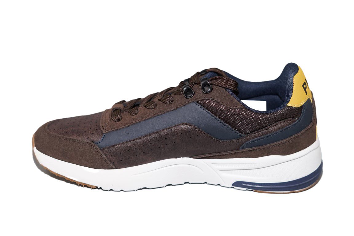 Sportieve Sneaker van PME Legend in bruin blauw combi met witte zool.
