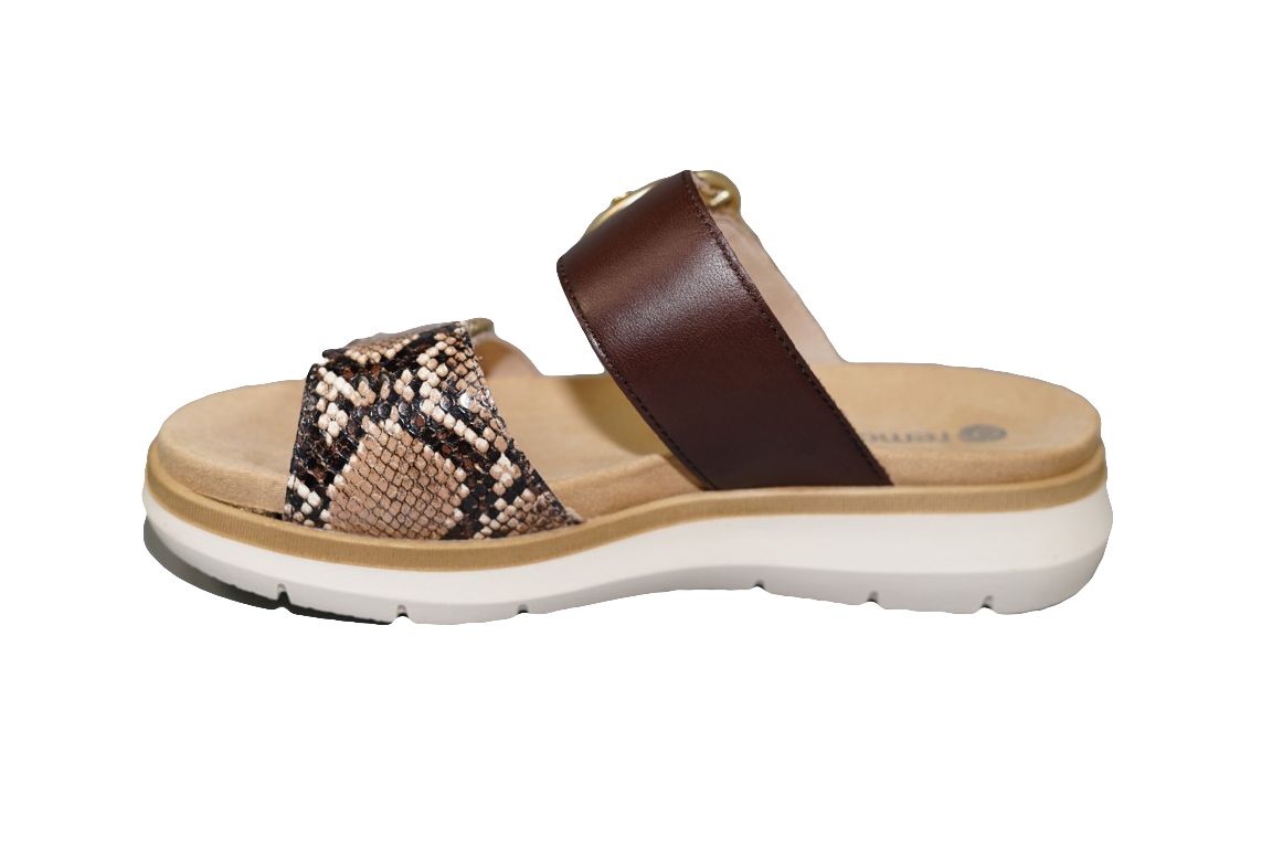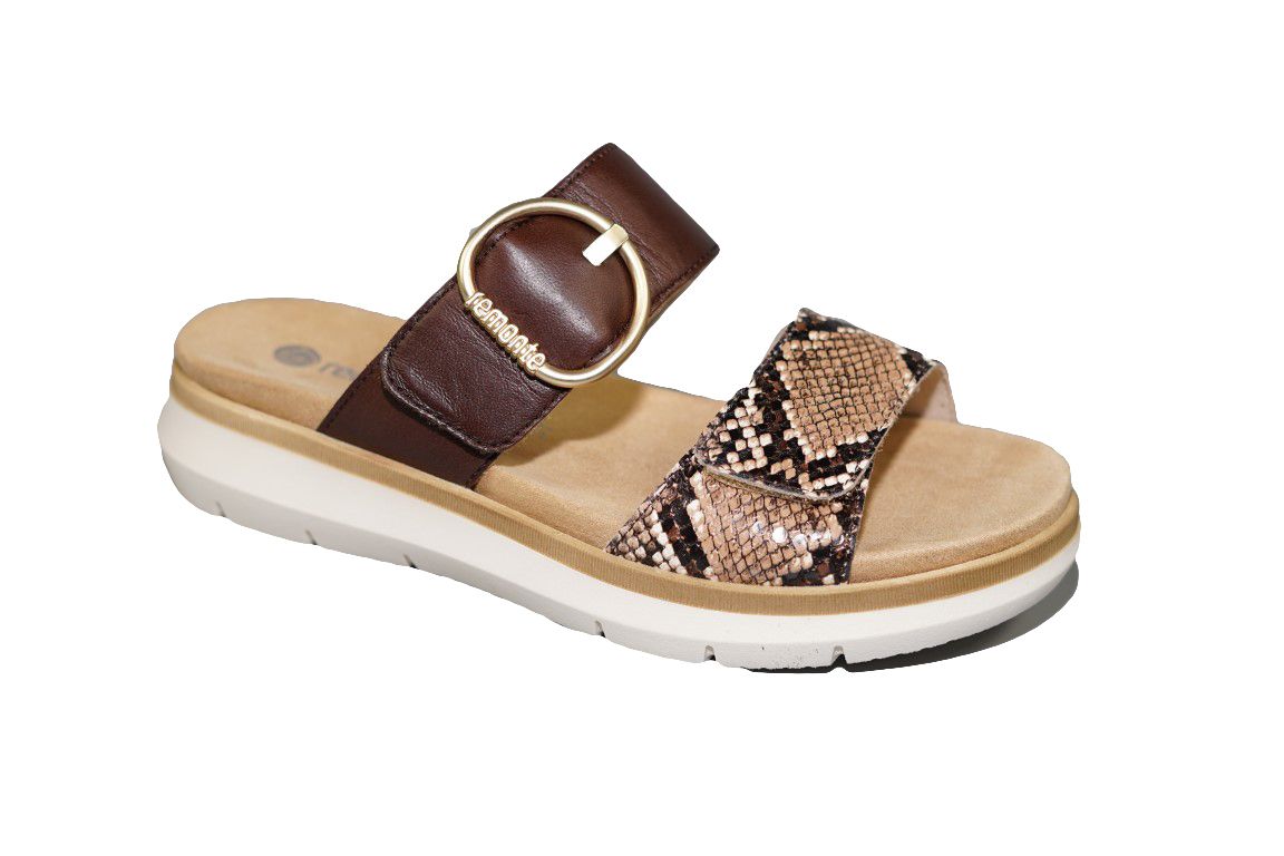 Mooie slipper van Remonte in bruin combi met snake print.