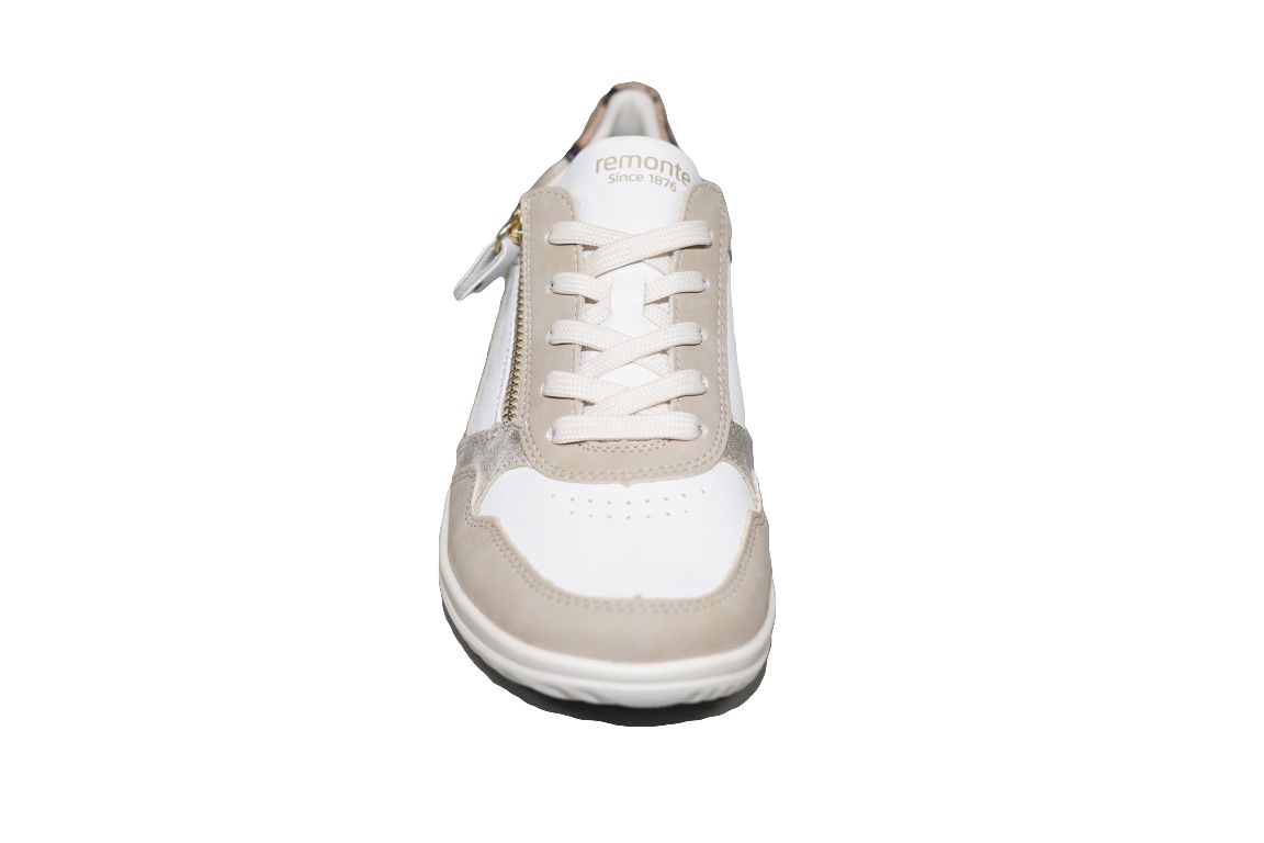 Sportieve sneaker van Remonte in wit beige met tijger hiel fijne zool.