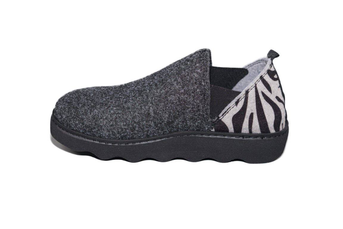 Halfhoge pantoffel van Rohde in grijs vilt met zebra hiel