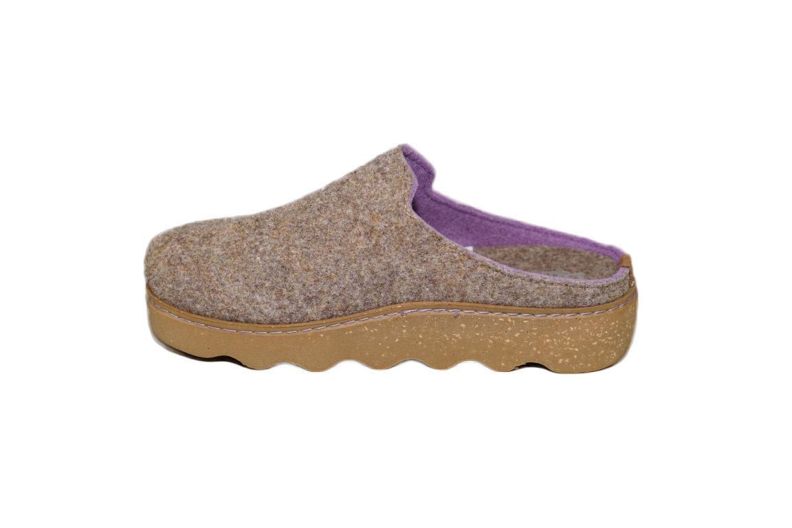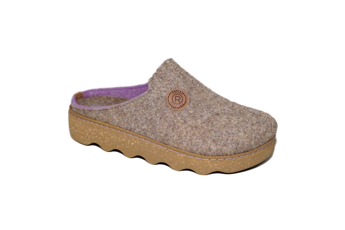 Warme pantoffel van Rohde in linnen kleur van viltstof op golfjes zool