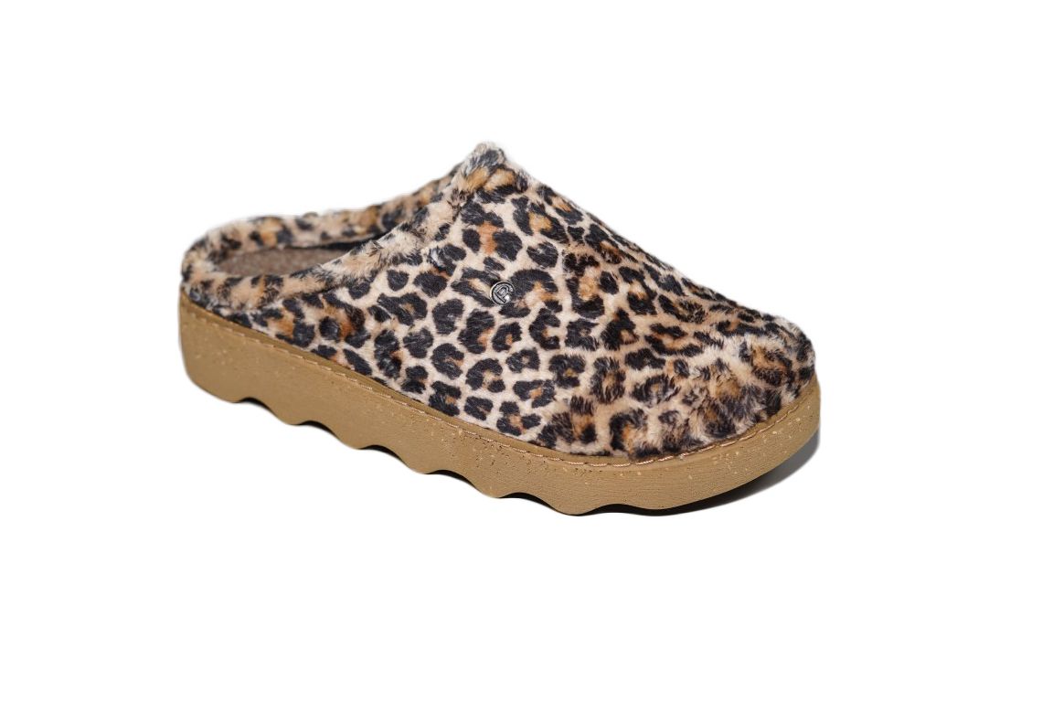 Warme pantoffel van Rohde in tijgerprint met golfjes zool.