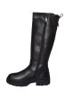 Stoere lange laars van Tamaris in zwart leer op een grove platte zool.