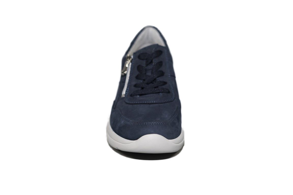 Licht gewicht veterschoen van Waldlaufer in blauw nubuck met handige rits.