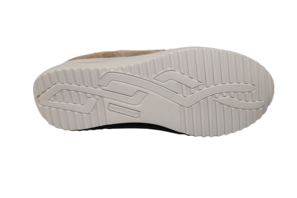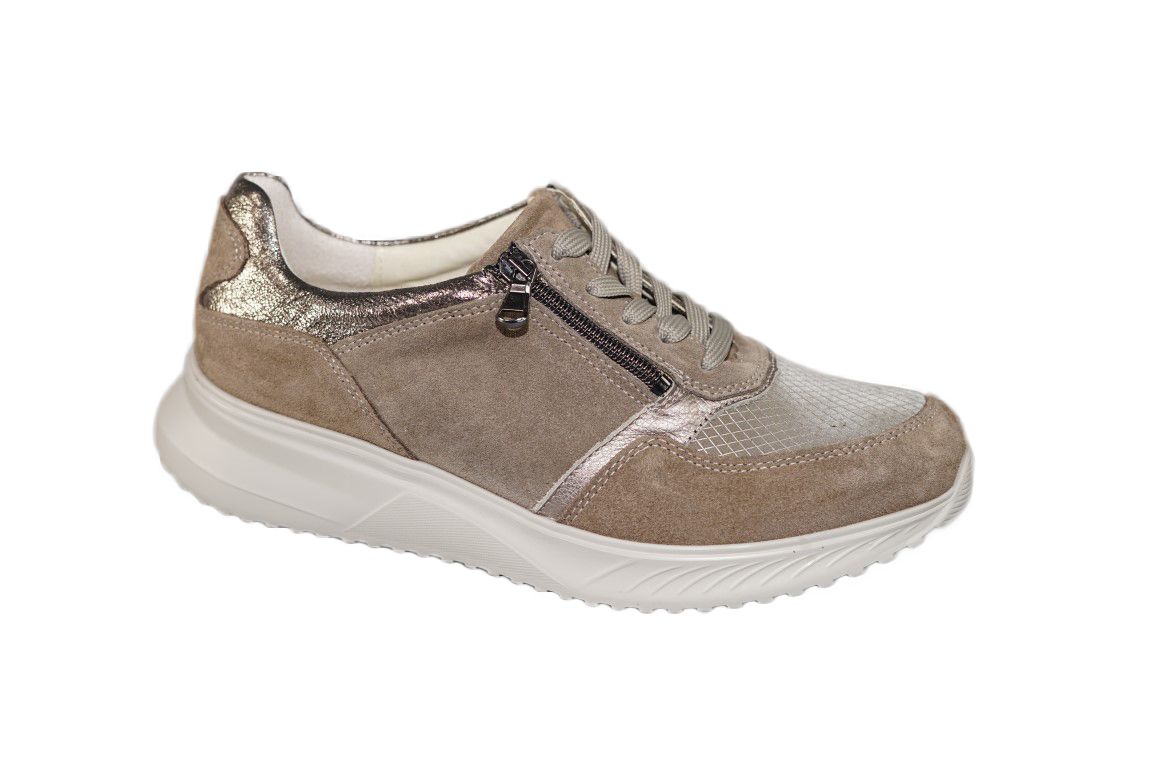 Sportieve veterschoen van Waldlaufer in beige taupe suede combi op extra brede K leest.